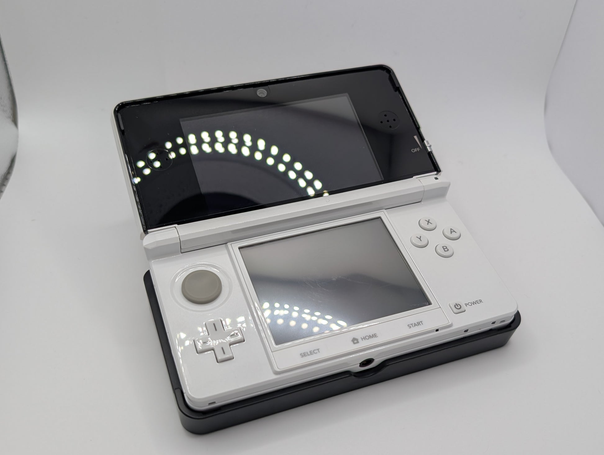Includes a Genuine Boxed Icy White 3DS. Region Changed with English language. Comes with all manuals, charging cable, dock, inserts, and unopened ar cards.