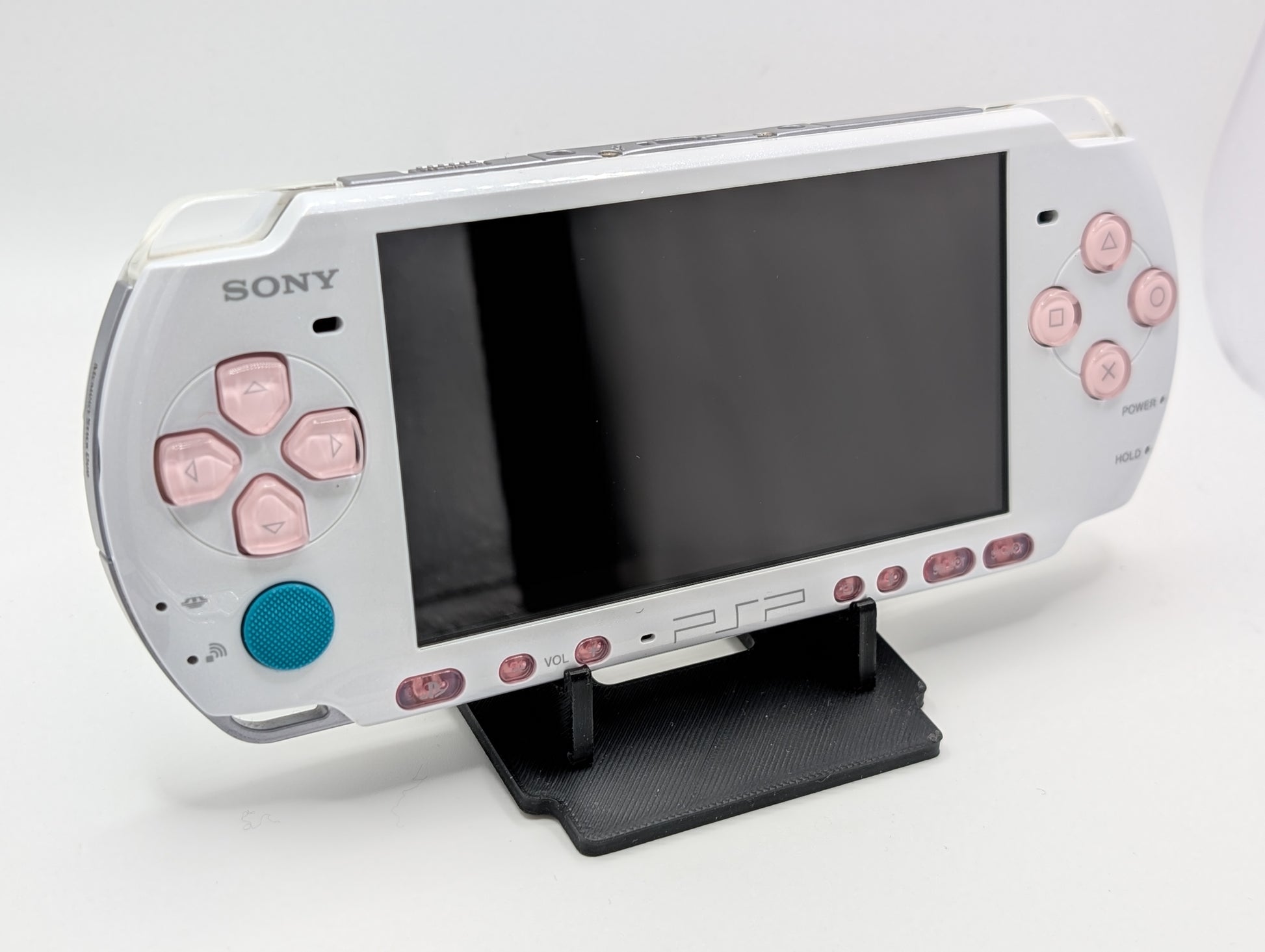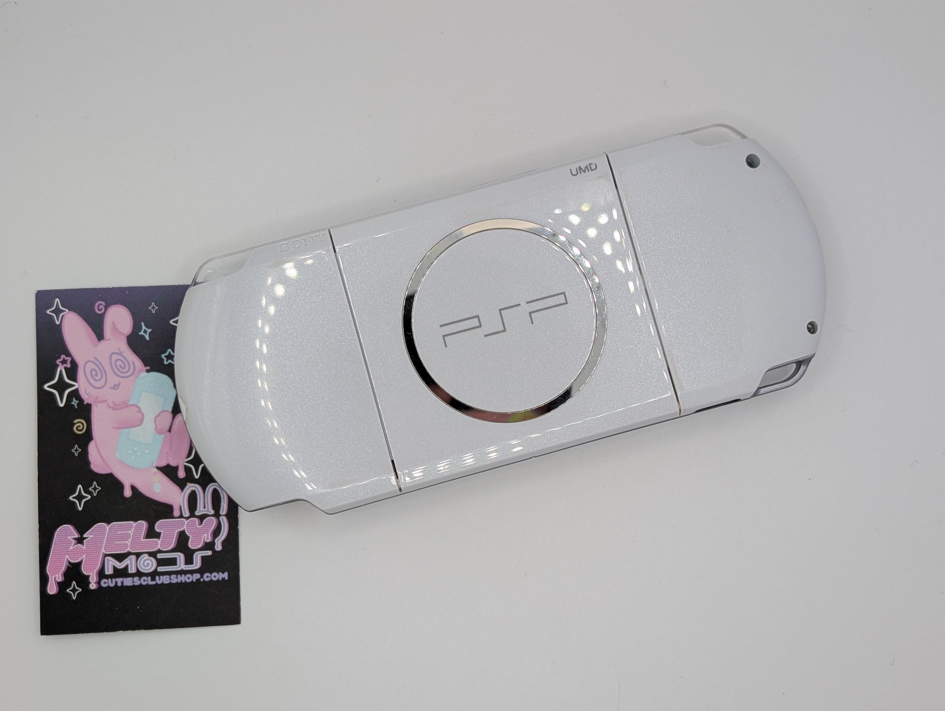 Includes a Modded White PSP 3000 (original shell and OEM Pink buttons) and a Melty Mods 128 GB Memory Card that comes preloaded with PSP Games, PS1 Games, Emulators, and PSP Themes.