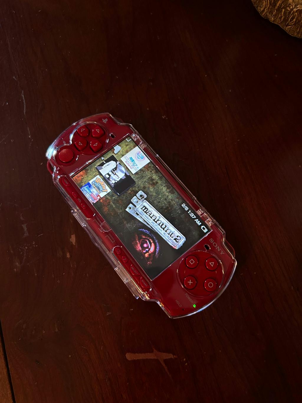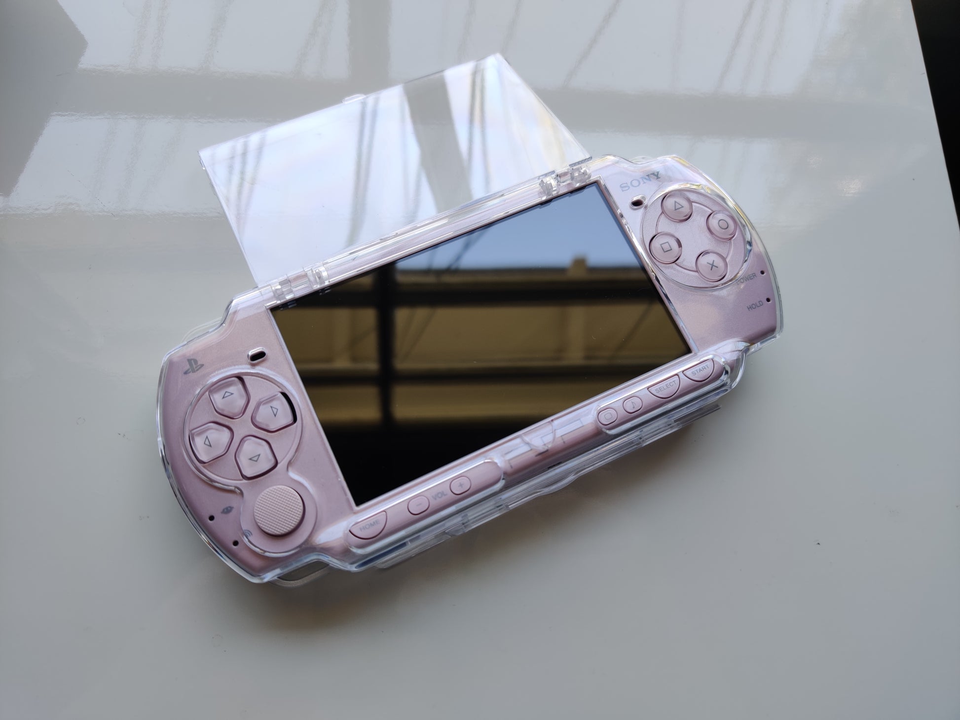 The case has a clear door that covers the screen that can be opened. And the back does open up for the UMD door as well.