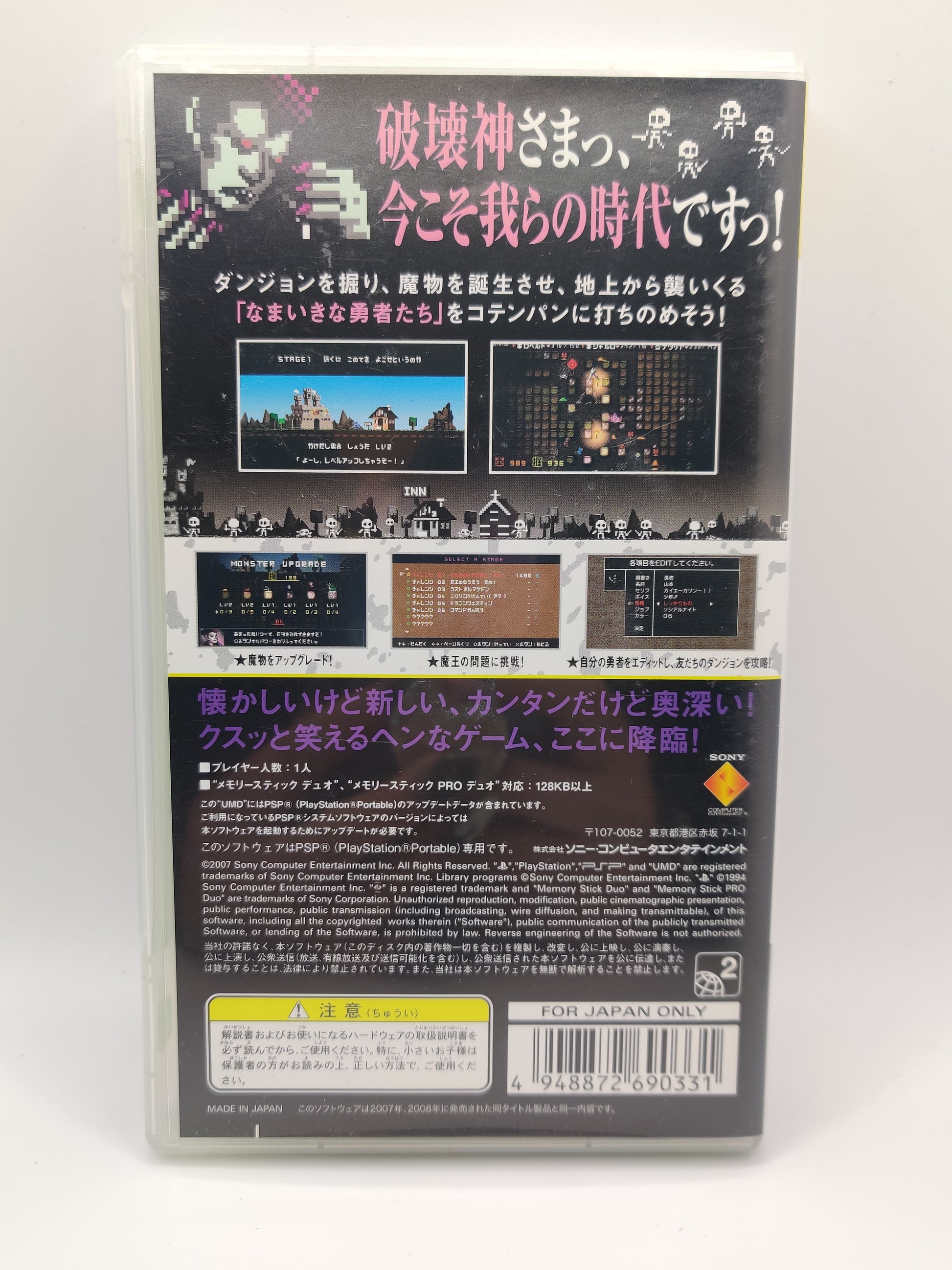 Take on the role of the ultimate dungeon master in What Did I Do to Deserve This, My Lord!? for PSP! This quirky Japanese import lets you create and defend your dungeon from invading heroes using strategic monster ecosystems. With its unique gameplay and charming pixel-art style, this game is perfect for fans of offbeat strategy titles. Japanese language. A fun and collectible addition to any PSP library!